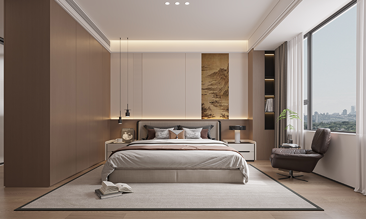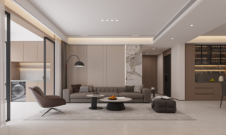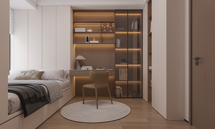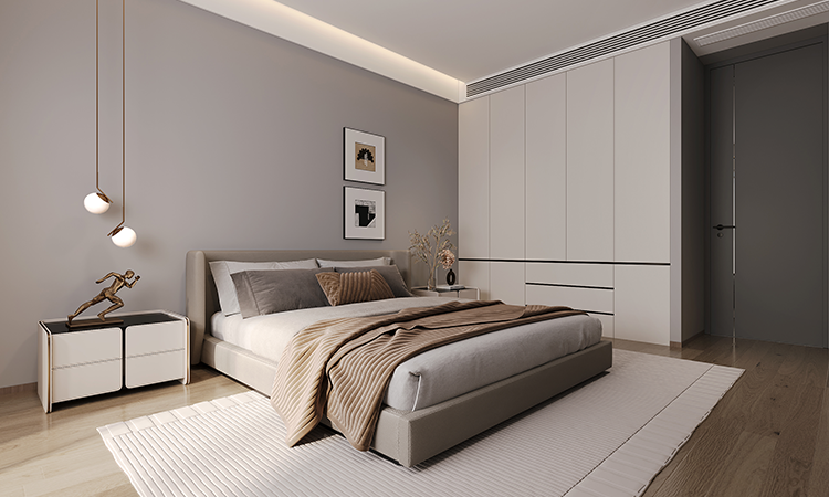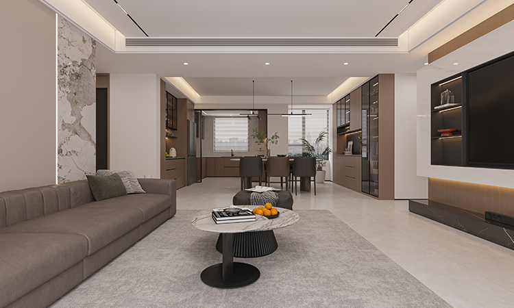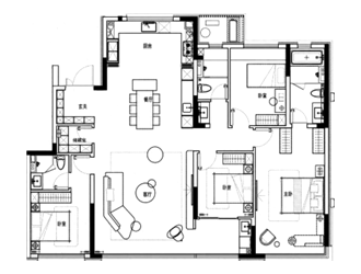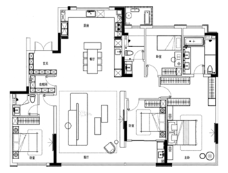 陽臺擴充進客廳,優化布局,空間更開闊通透。餐島一體,并做半開放式廚房,動線流暢,強化不同功能區間的互動。主臥室增加了過道式的衣帽間,增加儲物區,也避免空間浪費。