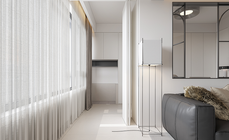 三室兩廳戶(hù)型,客廳是內(nèi)陽(yáng)臺(tái),改落地窗優(yōu)化室內(nèi)采光,并保留基礎(chǔ)的晾曬功能。次臥室將內(nèi)凹的不規(guī)則空間改成開(kāi)放式衣帽間,化戶(hù)型缺點(diǎn)為優(yōu)勢(shì)。衛(wèi)生間改成三分離布局,不同功能區(qū)互不打擾,使用更方便。
