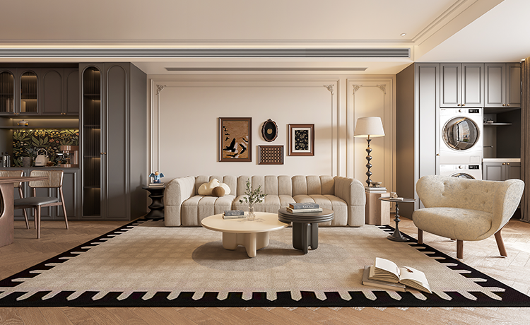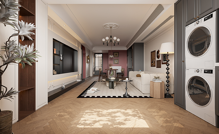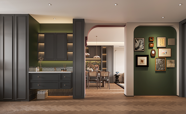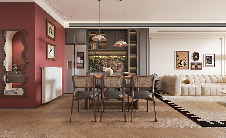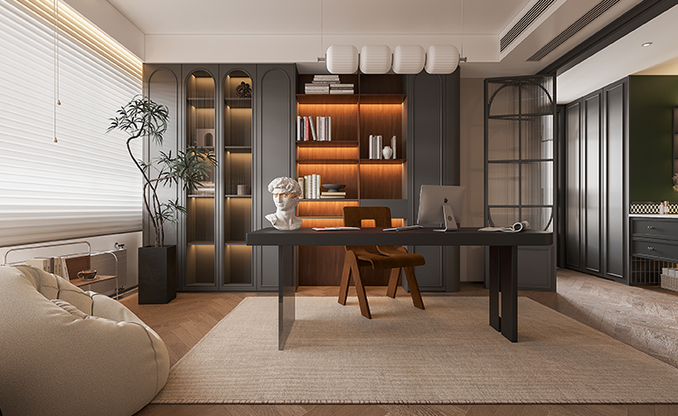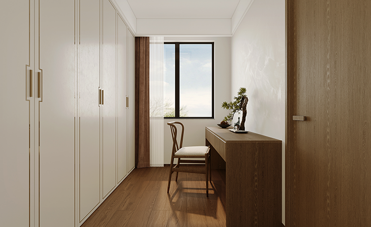 拆掉部分多余的墻體,重新優化布局和動線。客衛改成干區外移的布局,避免墻體遮擋視線,增強空間的開闊感。兩間朝南的臥室均讓渡出部分空間給到過道,優化生活動線。書房改成了開放式,采光更優渥。