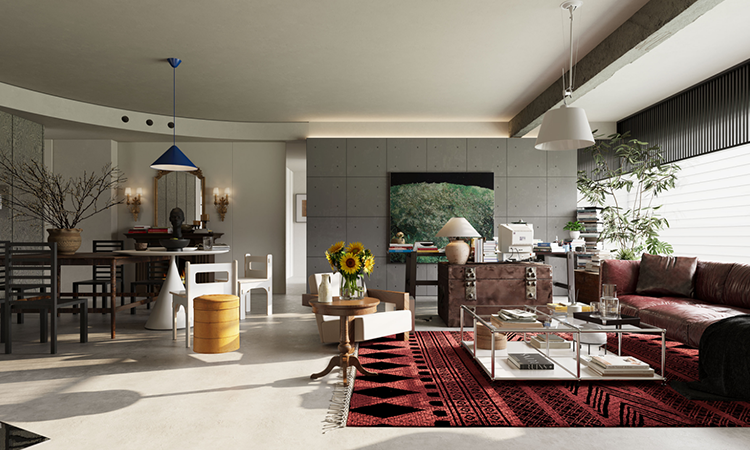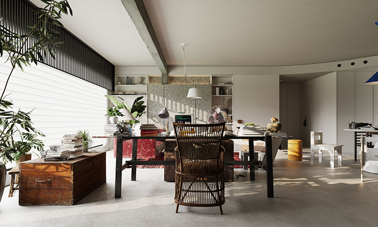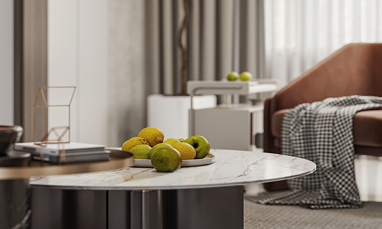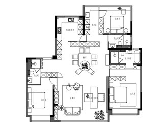 入戶(hù)處增加儲(chǔ)物空間,并做弧面處理,提升空間美感。大橫廳改成會(huì)客區(qū)+書(shū)房,書(shū)房可兼顧茶室功能。廚房拆墻定制儲(chǔ)物柜,并做隱形拉門(mén)設(shè)計(jì),空間更通透。獨(dú)立家政區(qū)為生活提供便利。