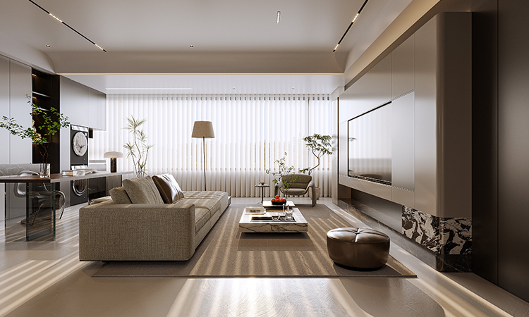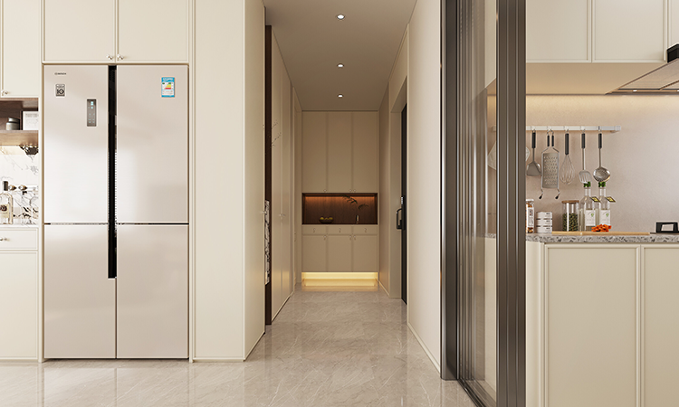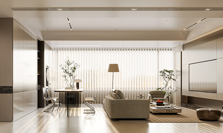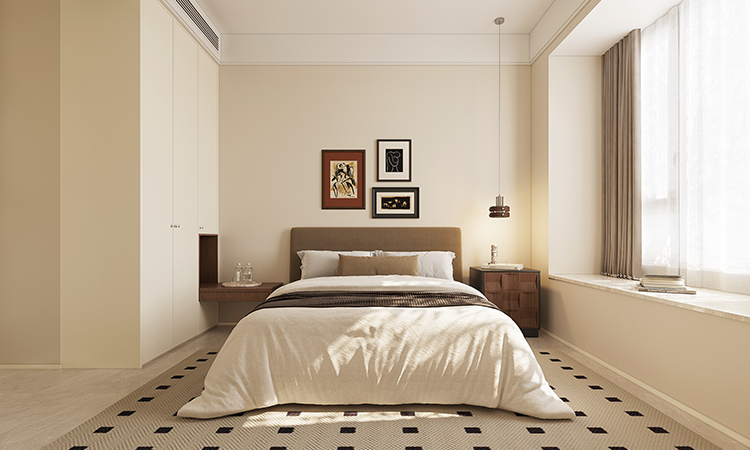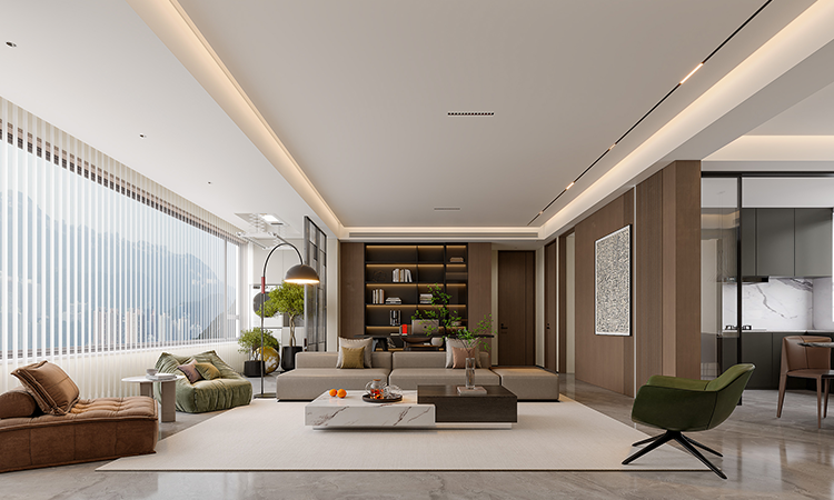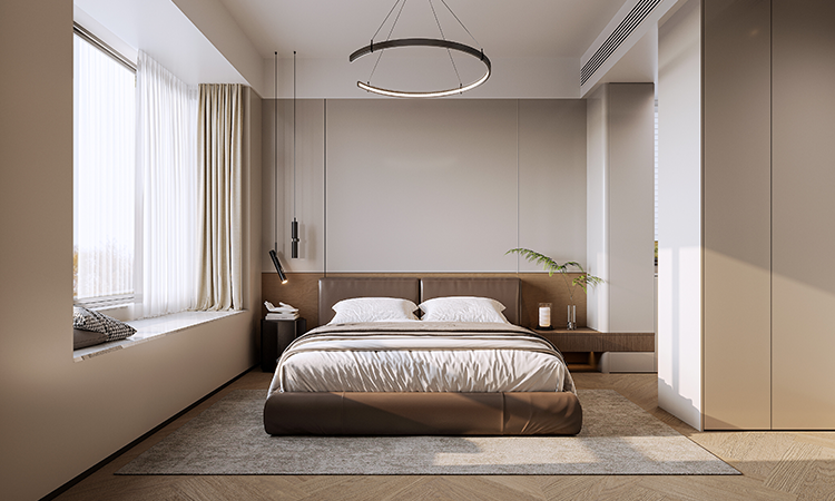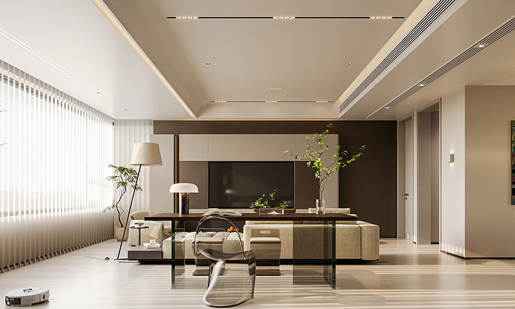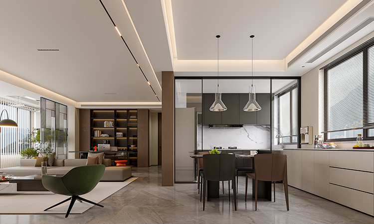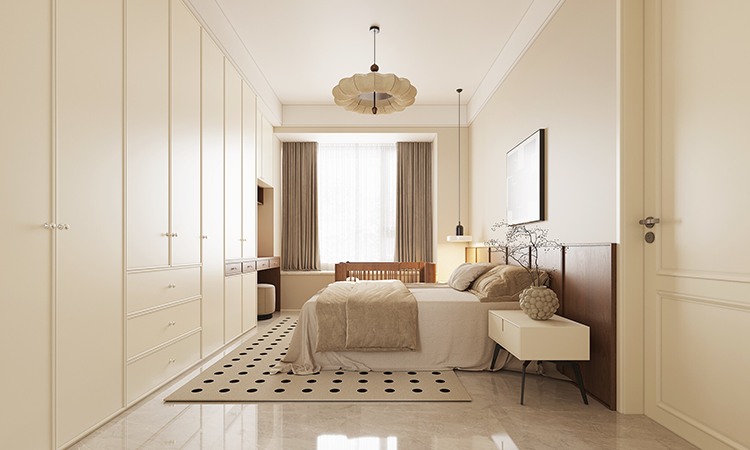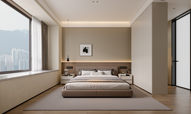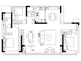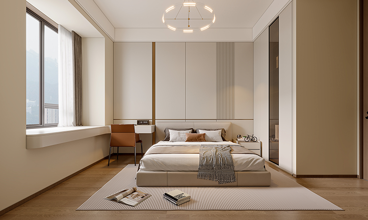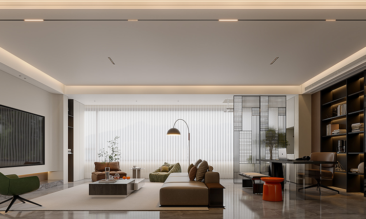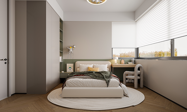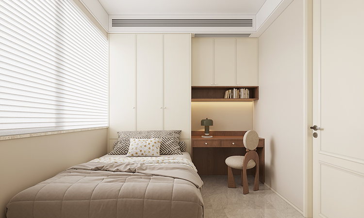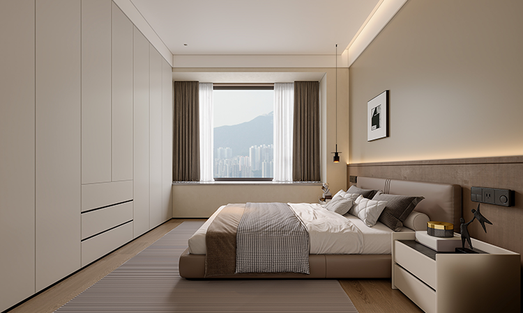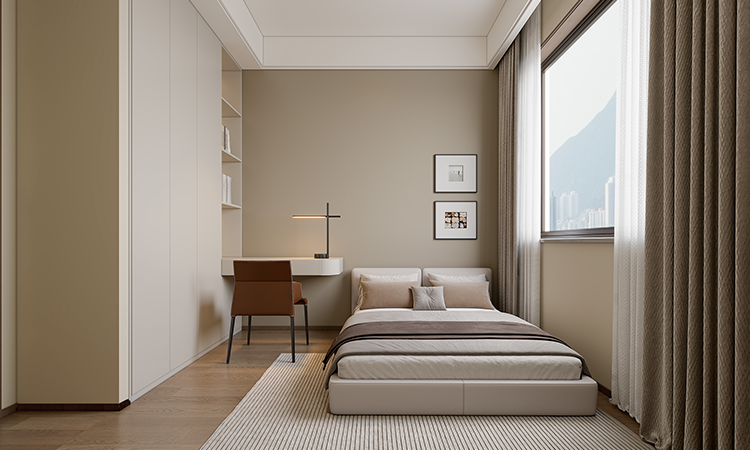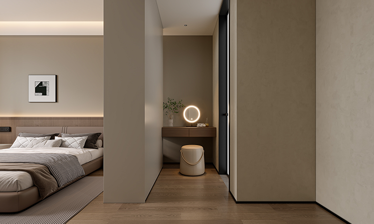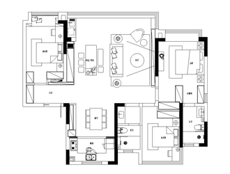 入戶過道讓渡部分空間給南次臥,優化布局結構。6.3米橫廳與陽臺全部打通,分別打造成客廳與書房,實現一廳多用。主臥室利用主衛與睡眠區之間的過道,定制步入式衣帽間,增加儲物空間。北次臥將陽臺擴充進來,增加學習區。