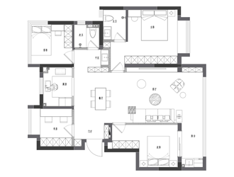 獨(dú)立入戶空間,避免入戶見(jiàn)廳的尷尬,并增加儲(chǔ)物空間,為進(jìn)出門收納、換鞋提供便利。整體布局敞亮通透,增加室內(nèi)進(jìn)光量,提高居住舒適度。保留雙衛(wèi)布局,為居者生活提供便利。