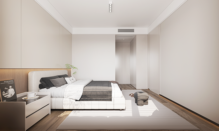 保留獨(dú)立入戶空間,內(nèi)嵌儲(chǔ)物柜為進(jìn)出門收納提供便利。橫廳被拆分成客廳與次臥,迎合居者一家人的生活需求。主臥室保留獨(dú)衛(wèi),形成套房布局,提高生活品質(zhì)。