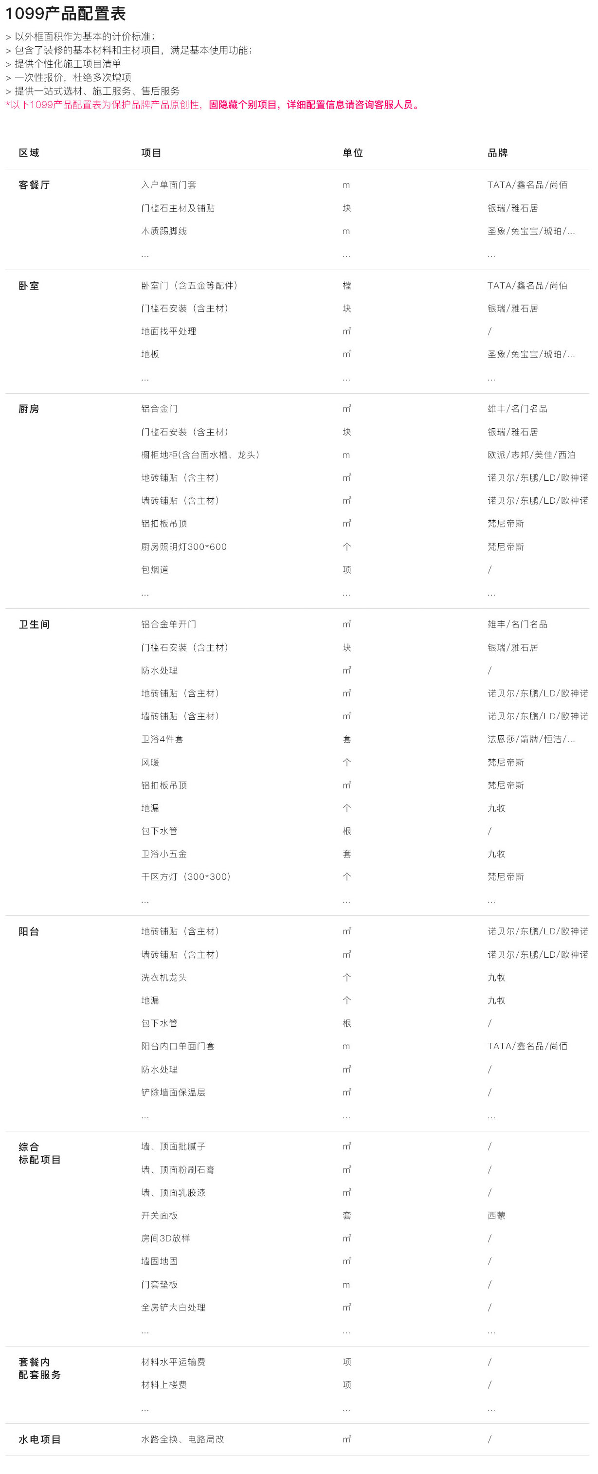 全案至尊系列 · 參數配置+報價